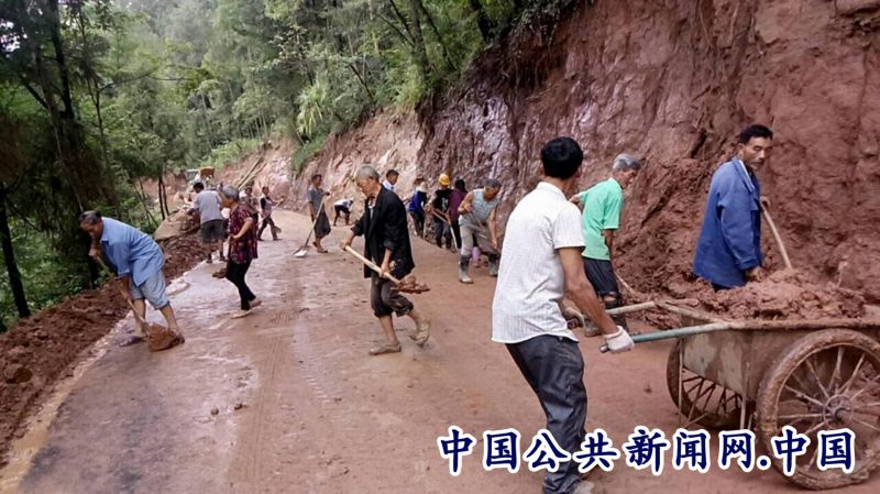 群众清除道路泥石流