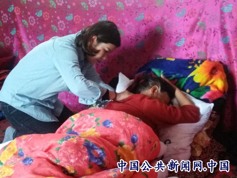 凯丽比努尔•艾合麦提来到阿依姆汗•艾麦提家,阿依姆汗•艾麦提正躺在床上双眼微闭,且全身乏力。仔细询问了阿依姆汗•艾麦提的情况后,得知老人家的高血压的老毛病又犯了。在询问老人家经常吃的药后,帮老人按摩脖颈并贴了膏药、烧水、盖被子,为老人家按摩缓解疼痛。并喊来了村医为其量血压,在测试数次后,确保老人家的血压降下来后,凯丽比努尔•艾合麦提的悬着的一颗心才慢慢放下来。