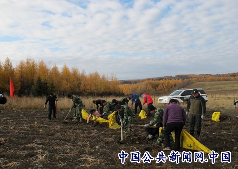 图为2017年长白法院精准扶贫干警利用国庆小长假期间到梨树沟村东岗扶贫项目种植基地采收马铃薯。