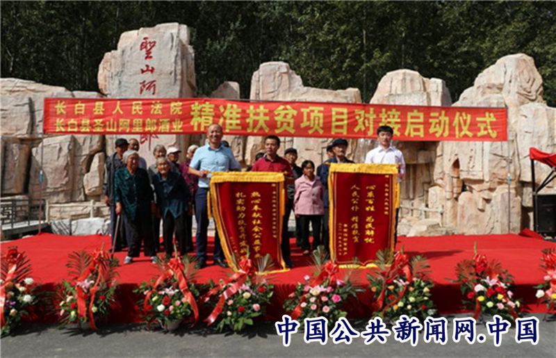 随着精准扶贫工作进入“啃硬骨头、攻坚拔寨”的冲刺期,为提高扶贫成效,增加贫困群众实际收益,真正实现脱贫不返贫目标,经深入分析研究,选择了党建工作扎实、经营理念先进、生产管理科学、发展前景广阔、潜力壮大旺盛、社会信誉良好、热心公益事业的长白圣山阿里郎酒业有限公司作为精准扶贫合作伙伴,将扶贫资金入股企业,取得收益后向无劳动能力的贫困群众分红增收。2018年9月2日举行了精准扶贫对接仪式,县委、县政府相关单位领导、马鹿沟镇党委、政府、部分其他乡镇领导、县人民法院全体干警及社会各界人士200余人参加活动。
