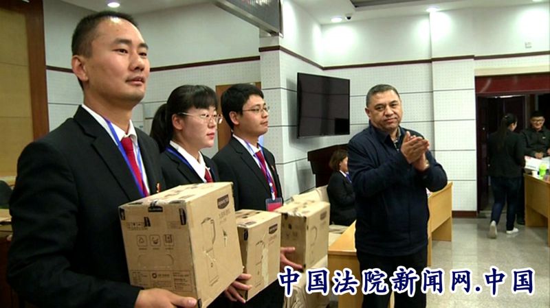 院长阿不力克木•台外库力领导为第二参赛小组选手颁发奖品