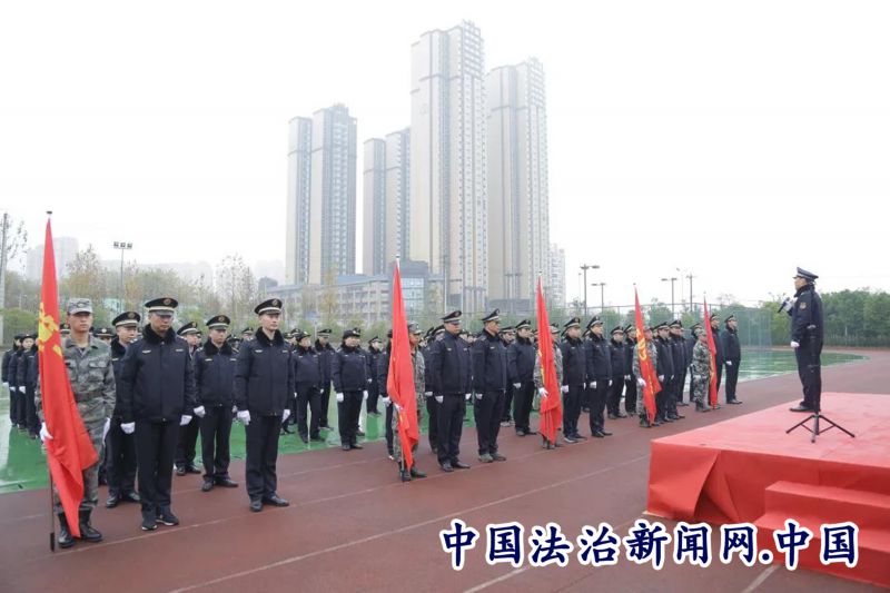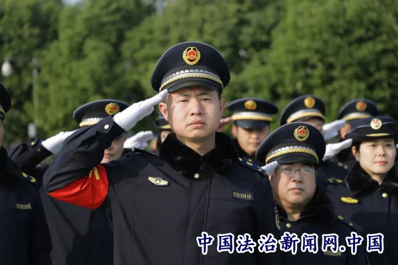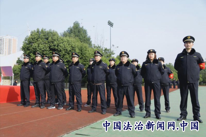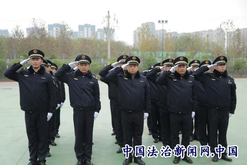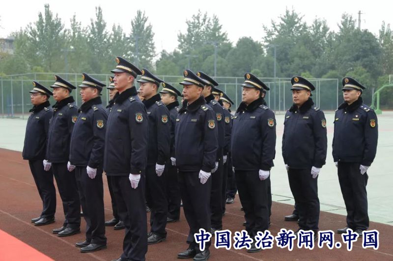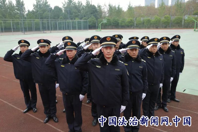 立正稍息、军姿站立、齐步行进与立定、跨立与立定、停止间转法....216名执法人员认真训练每一个动作。