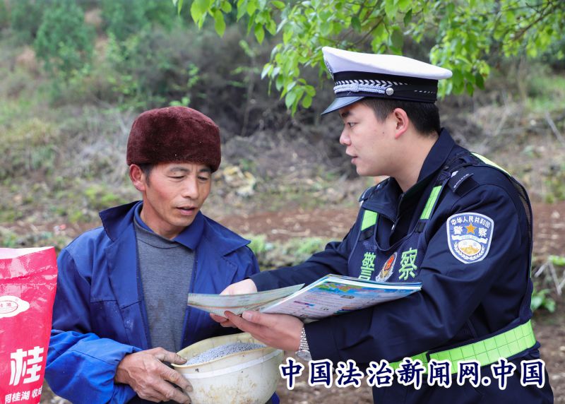 民警在向正在劳作的农民群众宣传交通安全知识。陆德华 摄