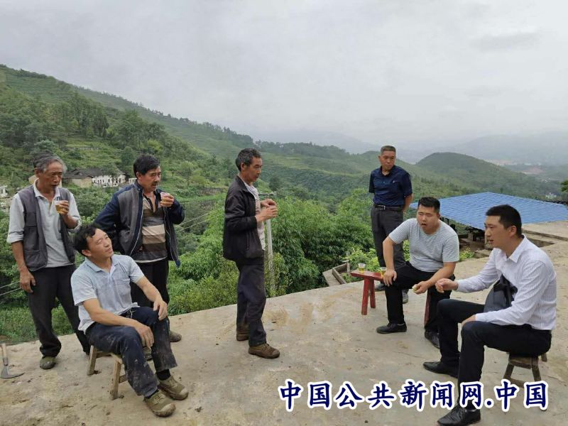到安场镇胜利村的脱贫攻坚队员在向村民了解脱贫攻坚短板和扫黑除恶工作情况。