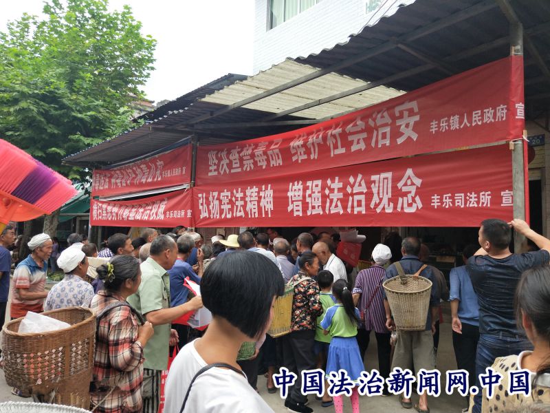 全民公众讯(宋小梅 申立兰)为进一步增强群众法治观念,不断提高人民群众安全感和政法机关满意度,2019年7月17日,务川自治县司法局丰乐司法所联合镇综治办、派出所、禁毒办等部门,利用赶场天在人员密集的丰乐集镇开展宪法、扫黑除恶、禁毒、双提升等法治宣传教育活动。