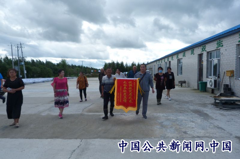 全民公众讯(马吉成)8月17日,黑龙江省宝清县夹信子镇二道村、七一村18名受灾群众将一面写有“抗洪救灾展风采,无私奉献显真情”的锦旗,送给赢利商砼有限公司,对该公司老总刘智会在抗洪救灾中给予受灾群众的帮助和支持表示由衷的感谢。