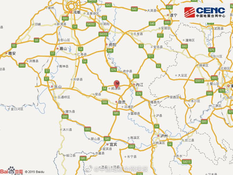 中国地震台网正式测定:09月08日06时42分在四川内江市威远县(北纬29.55度,东经104.79度)发生5.4级地震,震源深度10千米。