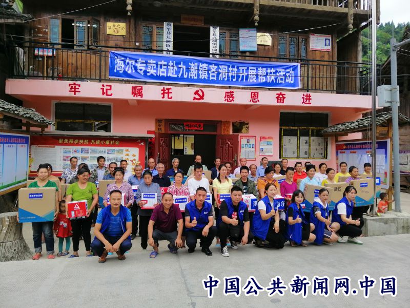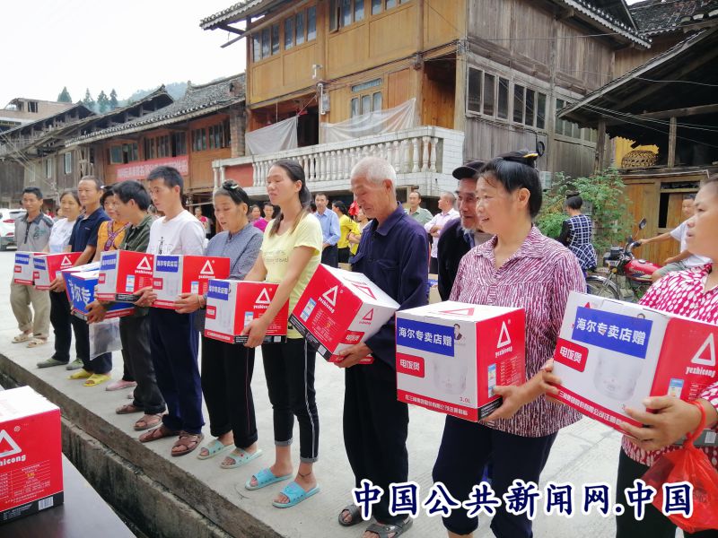 在驻村第一书记彭淑金的牵线搭桥下,8月30日,黎平海尔专卖店为黎平县九潮镇吝洞村40户环境卫生“清洁户”,每户捐赠一台电饭煲或电风扇。