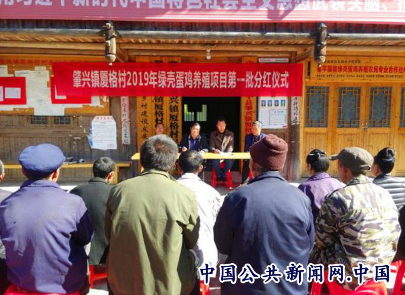 肇兴镇厦格绿壳蛋鸡养殖项目采取企业+合作社+农户方式,吸纳了贫困户项目扶贫资金55.25万元注入合作社,发展绿壳蛋鸡养殖12000余只。当天,该村28户贫困户均领到2019年第一批300元的分红。